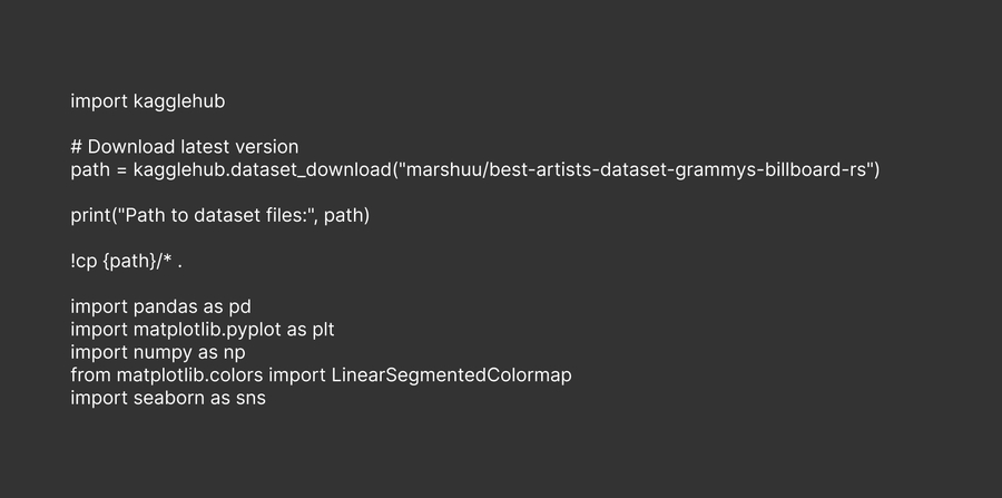 В рамках исследования были использованы данные, полученные с платформы kaggle.com. Датасет «Greatest artists dataset Grammys | Billboard | RS» представляет собой тщательно собранную компиляцию наборов данных, черпающих информацию из авторитетных источников: Википедии, Billboard и Rolling Stone. В состав дата-сета входят пять отдельных наборов данных: