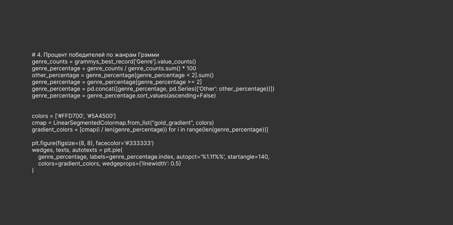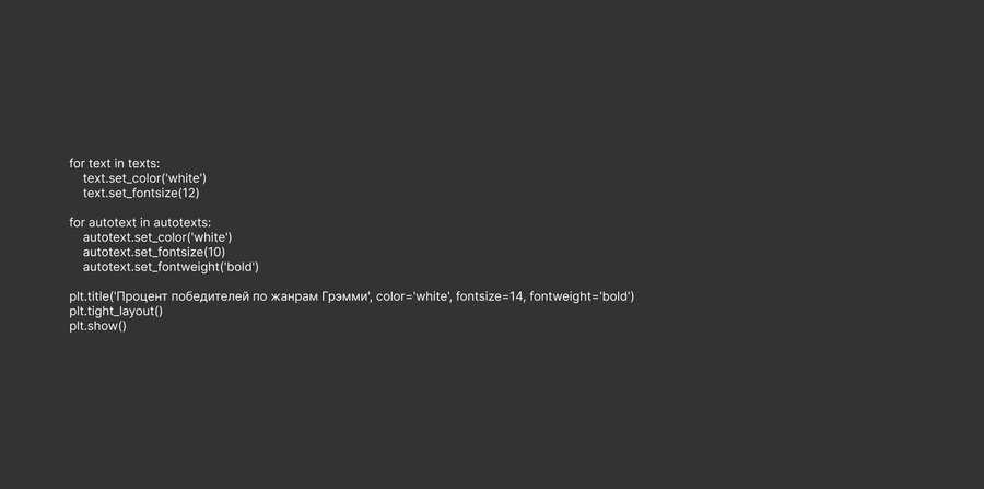 Код для круговой диаграммы «Процент победителей по жанрам Грэмми».