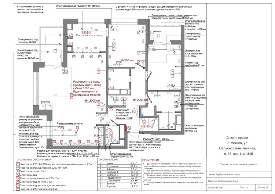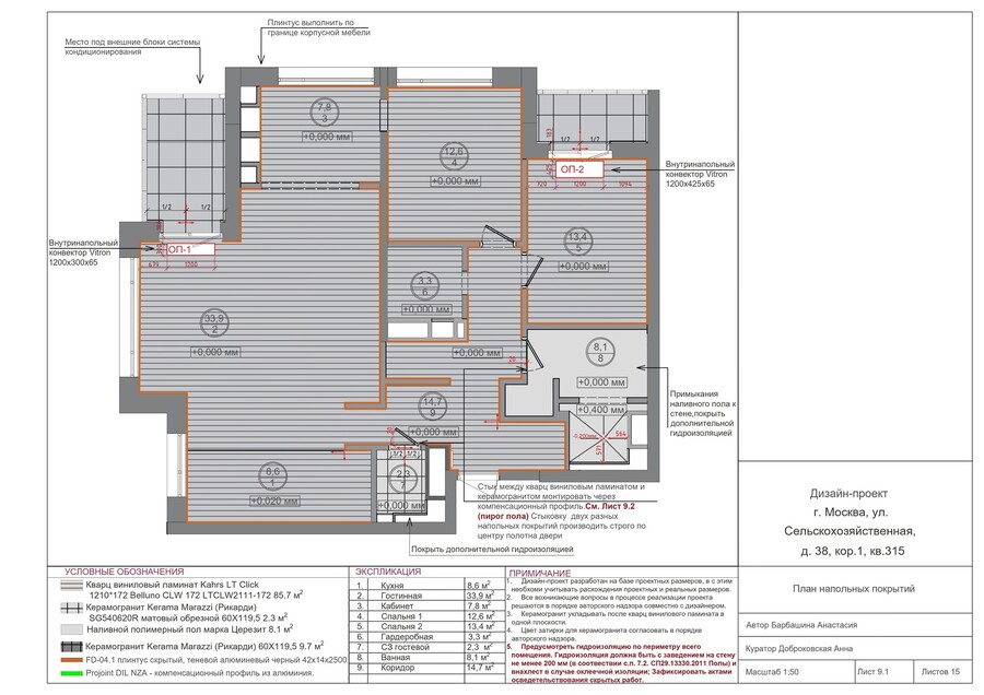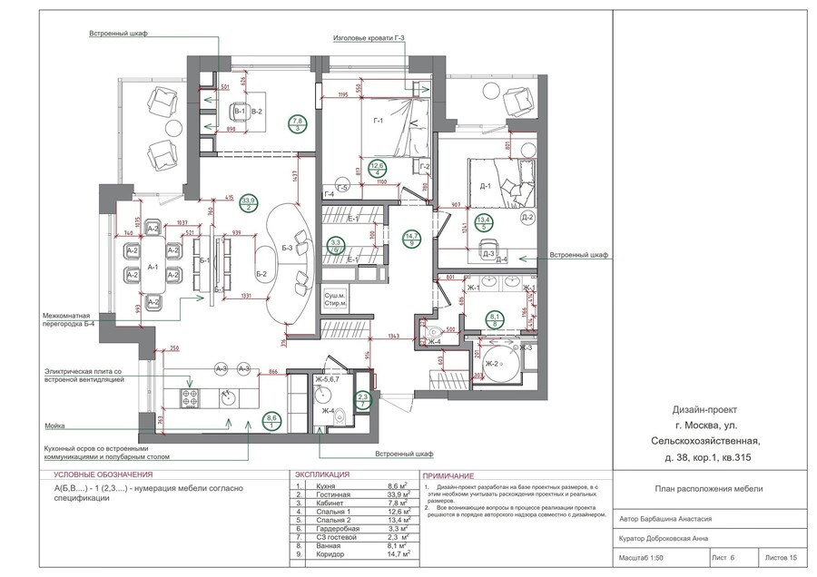 Спальня заказчицы. Для поддержания уютной и расслабляющей атмосферы используются насыщенные оттенки дерева и бархатного текстиля. Кровать с высоким изголовьем создает ощущение комфорта.