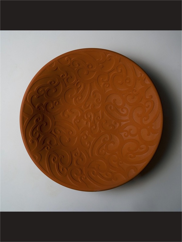 Декоративное интерьерное блюдо «София». Предмет серии работ. Гончарная формовка. Ф40см. Скульптурное декорирование.