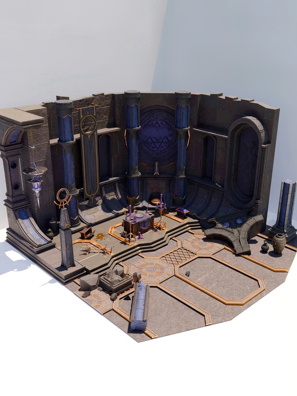 В центре, окружённый фиолетовыми свечами и окутанный туманом магии, возвышается алтарь — черный, будто вырезанный из ночи, и украшенный таинственными символами. Воздух здесь пропитан ароматом воска и меди, но под ним едва уловим гниющий шепот чего-то старого, забытого, но не исчезнувшего.