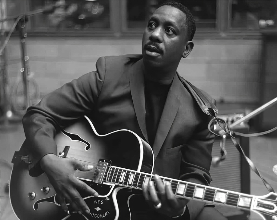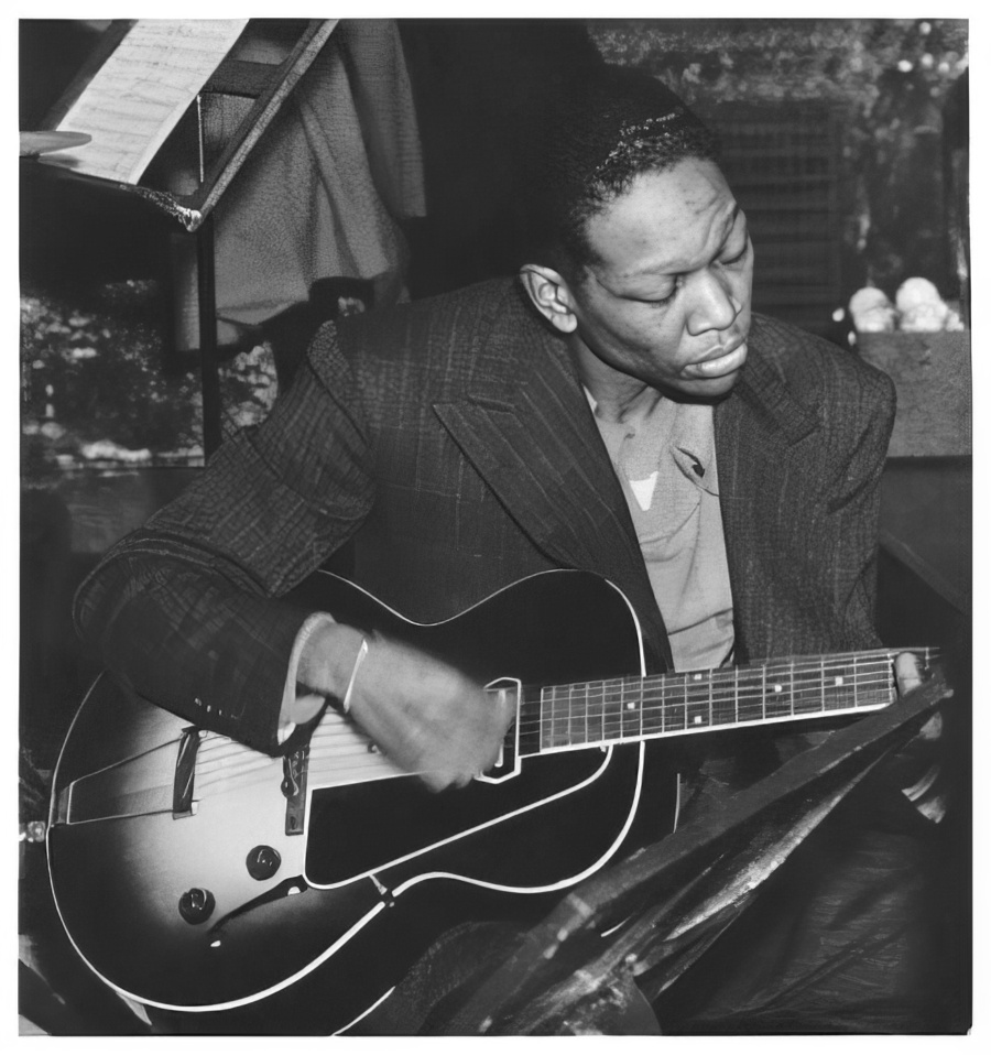(1) Уэс Монтгомери играет на гитаре. Фотограф и год неизвестны. (2) Чарли Кристиан играет на гитаре. Ок. 1940 г. Фотограф неизвестен.