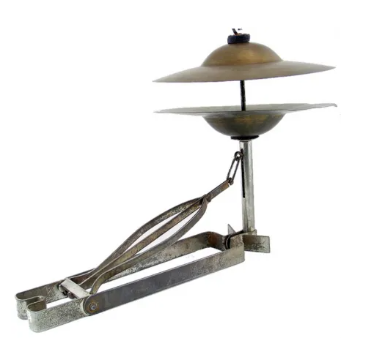 Педаль для управлением тарелками. Середина XIX века (слева). Трэп-установка. Начало XX века (справа)