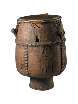 Африканский барабан. 1600–1800 гг. Барабан вырезан из древесины дерева cordia africana (слева). Древний Египетский барабан. Год неизвестен (справа)