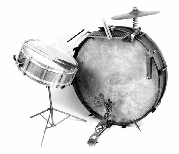 Однако барабанная установка, являющаяся частью джаз-бенда, — это американское изобретение. Изначально в 40-х годах XIX века барабанщики маршевых оркестров использовали индивидуальные ударные инструменты, которые предназначались для игры на них вручную. Однако через 20 лет начали создавать так называемые трэп-наборы, то есть объединенные в одно целое несколько ударных инструментов. Именно в то время была изобретена педаль для управления тарелками, чтобы исполнитель мог одновременно играть и на бас-барабане, и на малом барабане, используя как раз эту педаль.