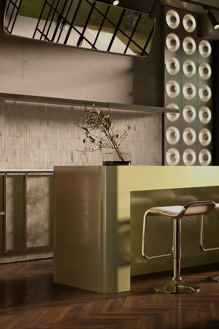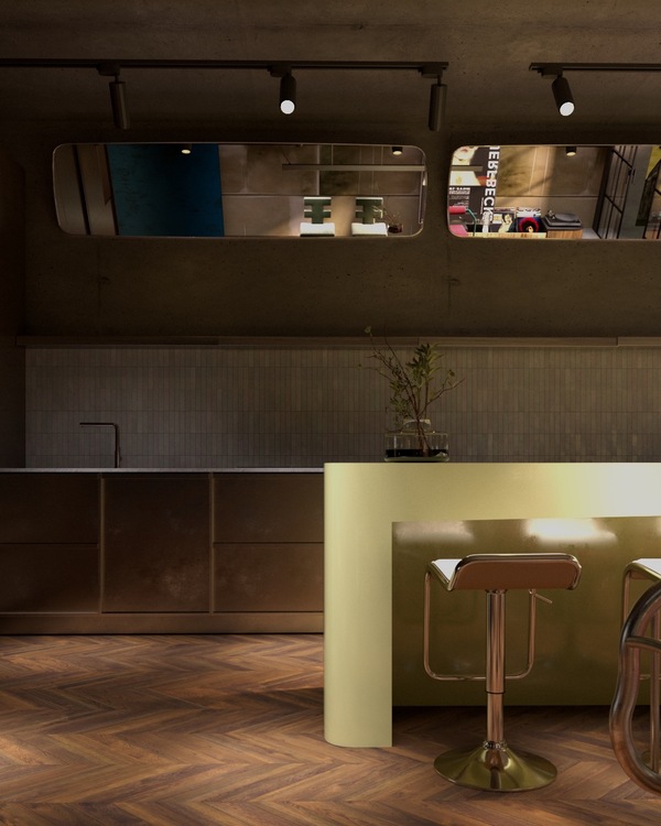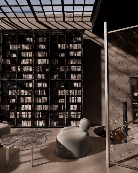 В начале истории Бернадетт переживает кризис: она разочаровалась в профессии, давно отошла от архитектуры и находится в состоянии внутренней борьбы. Ее дом в фильме отражает это настроение — холодные оттенки, ощущение заброшенности. Однако в финале фильма Бернадетт вновь обретает себя, возвращается к творчеству и налаживает отношения с близкими. В своем проекте я создаю пространство для «новой, обретшей себя» Бернадетт. Я использовала в качестве референса интерьер ее дома и ее работы, переосмыслив их в новом ключе.