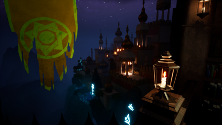 In the afternoon, the soft, golden light floods the streets, sneaking through the clouds. The heat of white towers and the golden dome makes it feel comfortable before the night shines cold, clear moonlight with flashes of shining blue magic and rare bonfires.