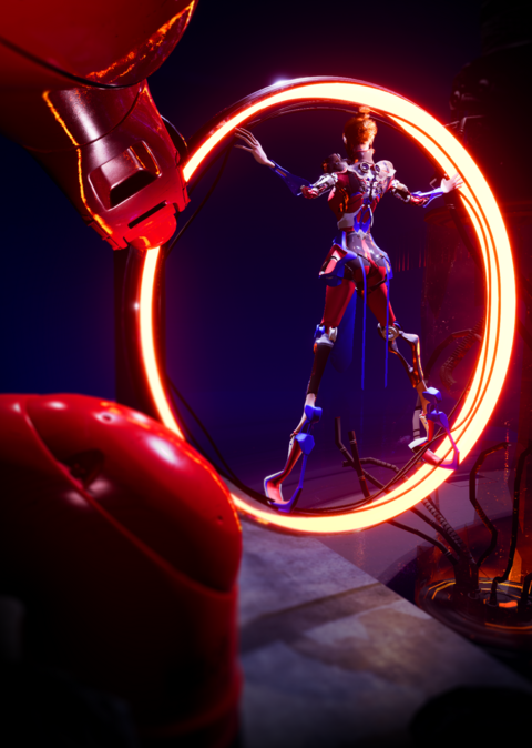 Hard‐surface моделинг костюма героини в Blender. Дизайн адаптирован под механику крепления конечностей.