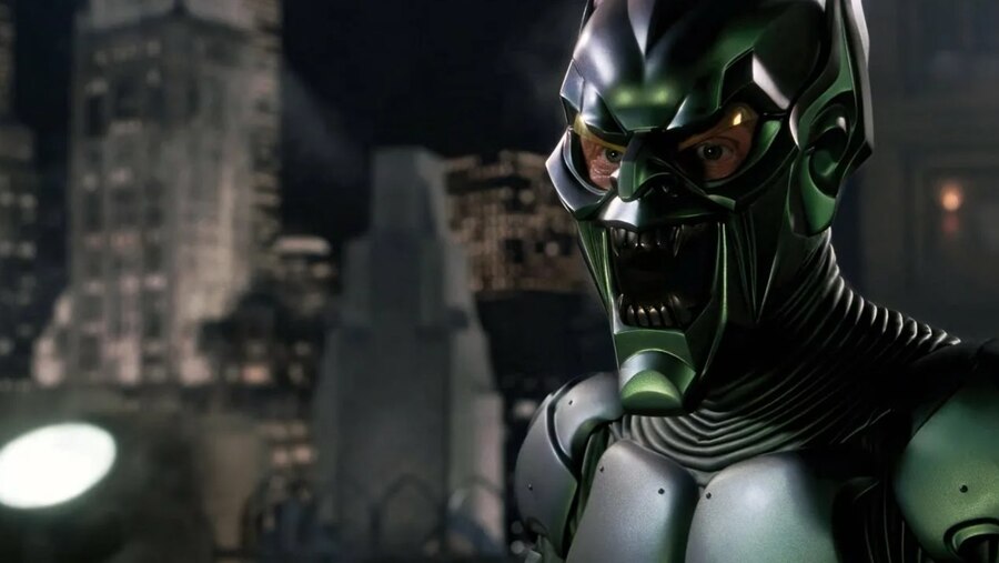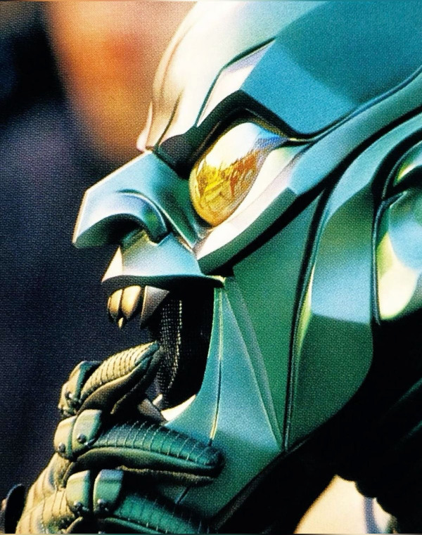 В первом фильме «Человек-паук» (2002) в создании Зеленого Гоблина гармонично сочетались практические спецэффекты и CGI. Режиссер Сэм Рэйми и его команда использовали реальные модели костюма и маски, а для сложных сцен использовались цифровые эффекты. Также команда смогла продумать костюм так, чтобы через маску можно было прослеживать актерскую игру Уильяма Дефо.
