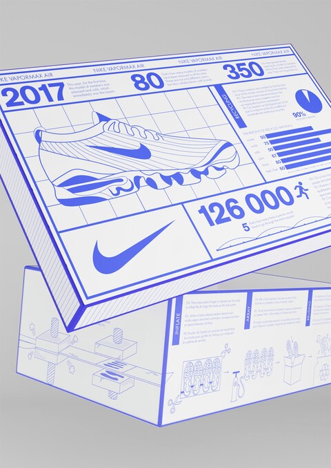 Модель кроссовок Nike VaporMax в свое время была очень уникальной и в некой степени революционной. Все потому что она имеет уникальную технологию производства и цепляющий дизайн. Это модель с интересной историей, которая статистически отражена в инфографике, помещенной на коробку. Кроме того, здесь изображен процесс создания удобной и популярной сейчас подошвы. Все это вместе помогает узнать больше о Nike VaporMax.