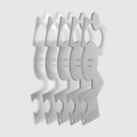 Предмет собран из простых фигур, которые при наложении дополняют лучшие стороны друг друга слиянием или вычитанием. Взаимоотношение фигур в своём двухмерном мире становится функциональным в трёхмерном пространстве. Вот и вся концепция)