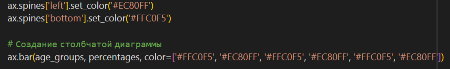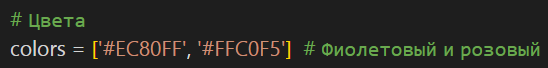 Первоначально я выбрала вариант написания кода по первым двум картинкам, но позже произошли трудности и пришлость прибегнуть в чату GPT, чтобы тот помог разобраться, как правильно применить цвет. (последние две картинки)