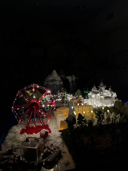 Omni — all, each, every. Город с разными климатическими поясами и природными ландшафтами, сочетающий в себе все и сразу. Море и песок рядом с морозной ярмаркой, почему бы и нет? Мы не ограничивали друг друга в самовыражении, подчиняя макет только общему рельефу. Отображения каждого из нас, реализованные в кусочках общего города, как части лоскутного одеяла, соединяются в единое целое — Omnitown.