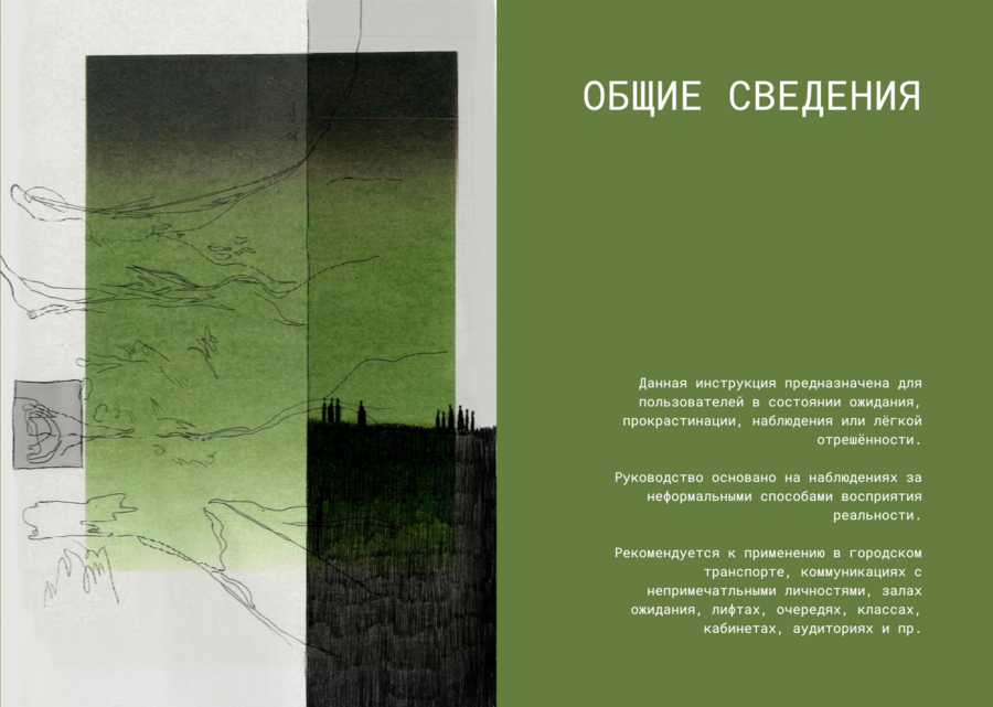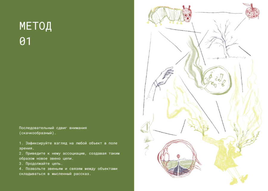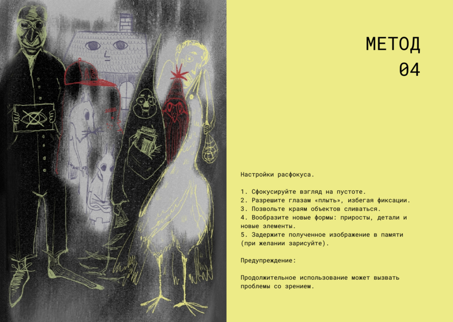 Зин посвящён техникам ментального ухода из реальности в ситуациях монотонности и безысходности.