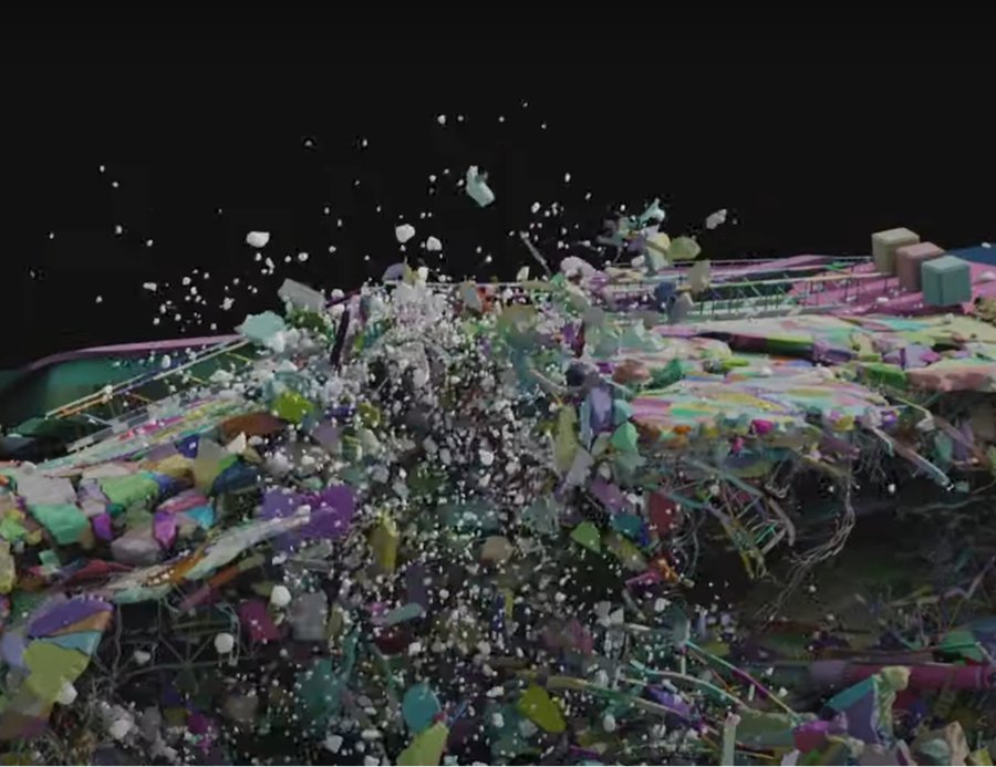 Современное моделирование разрушений основано на процедурных симуляциях, где физика управляется через системы ограничений (constraints) — жёстких, мягких и клеевых соединений, определяющих, как фрагменты объекта будут отделяться при нагрузке. Для построения таких симуляций используется слоистый подход: сначала задаётся основная геометрия (стены, балки), затем — фрагментация (через Voronoi- или Boolean-разбиение), и, наконец, добавляются мелкие обломки, пыль, вторичные эффекты. Симуляции часто рассчитываются в специализированных узловых системах, где на каждом этапе настраиваются физические параметры — масса, плотность, трение, сопротивление.