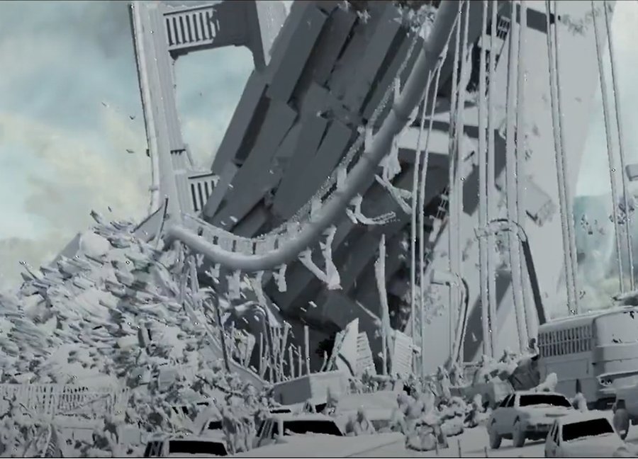 Исследование посвящено демонстрации эволюции цифровых технологий создания разрушений зданий, сооружений и крупных объектов в кино. Основной фокус — прогресс в достижении реалистичности разрушений: от первых экспериментов с трёхмерной графикой до сложных процедурных симуляций. В рамках исследования также рассматриваются технологии, способствующие убедительности разрушений — работа со светом, пылевыми и звуковыми эффектами, а также интеграция разрушенных объектов в окружение.