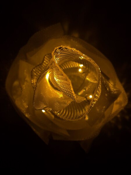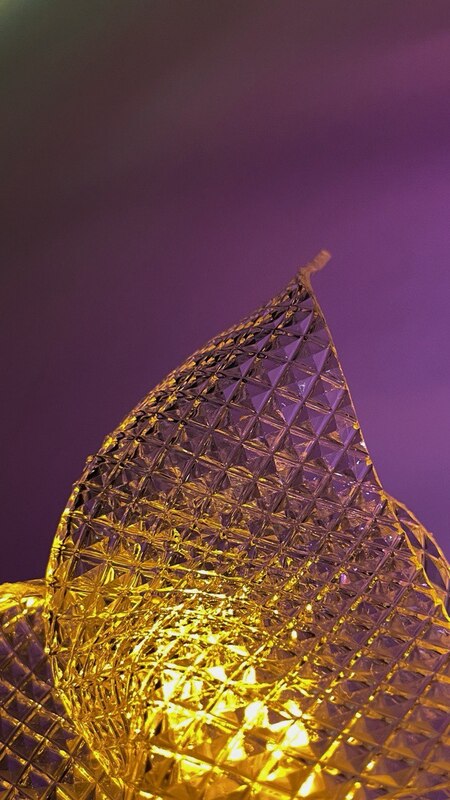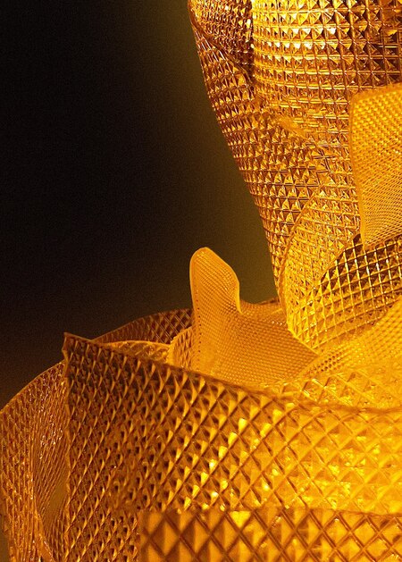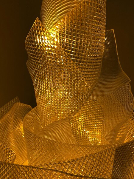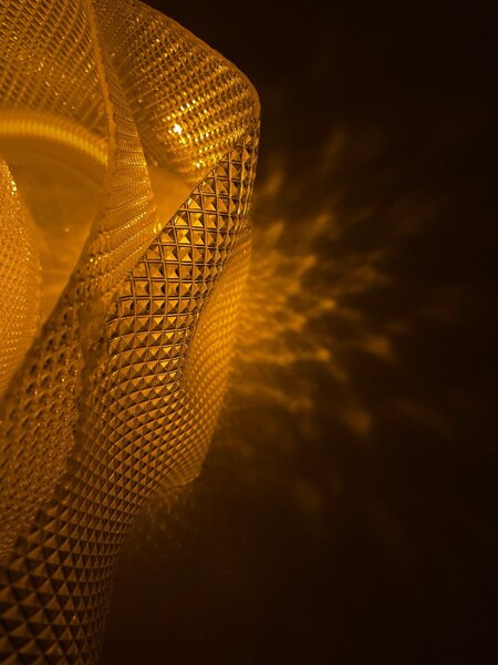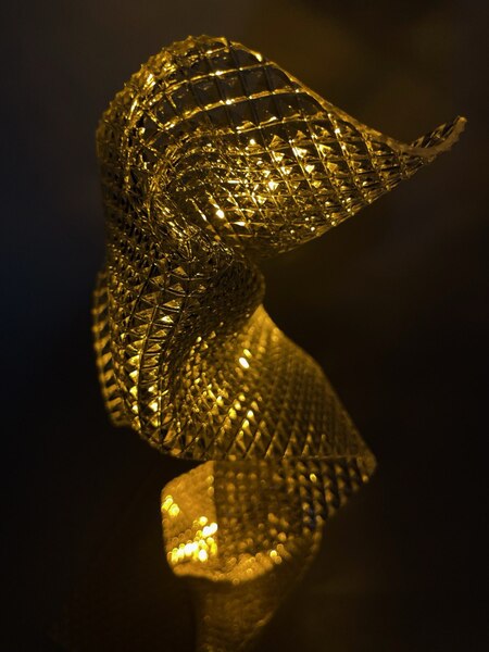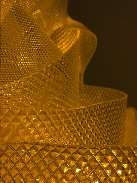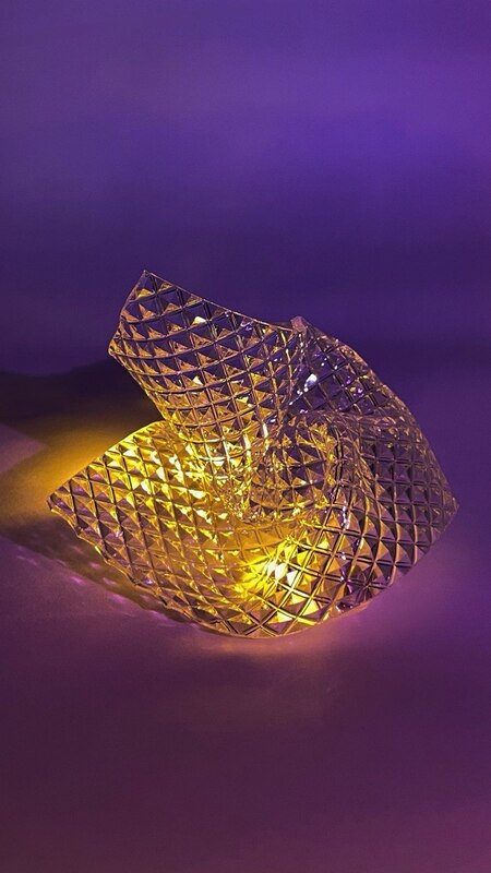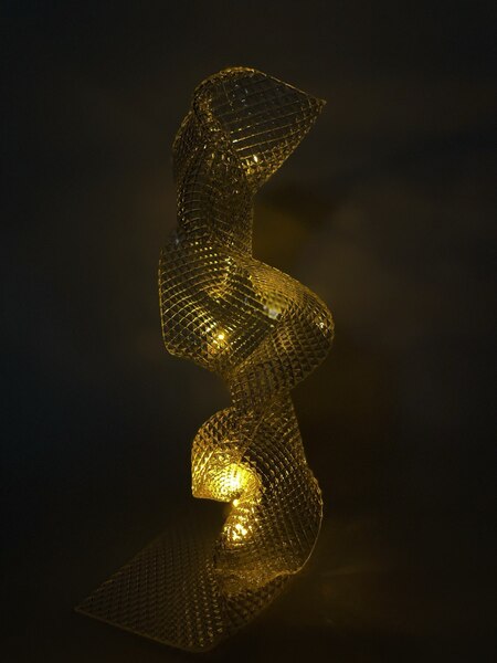 Макет выполнен из светорассеивающего пластика и благодаря этому взаимодействует не только с искусственным, но и с естественным светом, искажая его через слои.