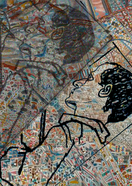 Это особенно видно в его работах, где элементы абстракции переплетаются с реалистичными изображениями, наполненными профессиональными знаниями анатомии и цветопередачи.