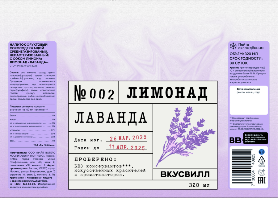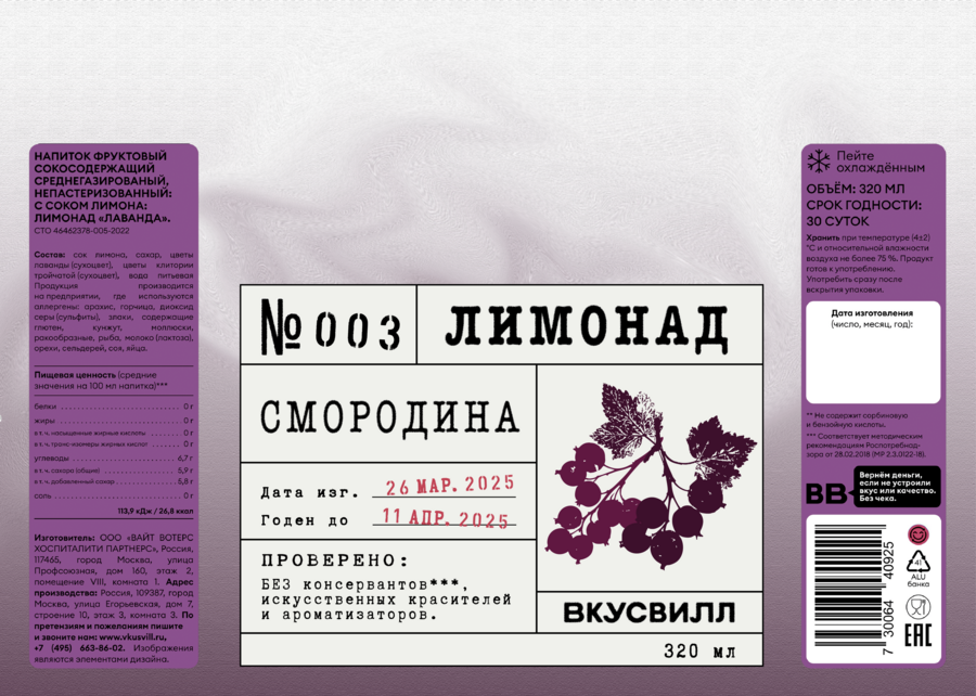 «‎Эссенция Вкуса»‎| Упаковка лимонада ВкусВилл