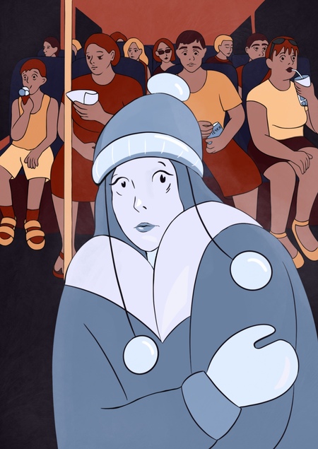 Героине постоянно холодно. Даже летом, пока всем вокруг жарко, она не может согреться и, кажется, замораживает все вокруг себя.