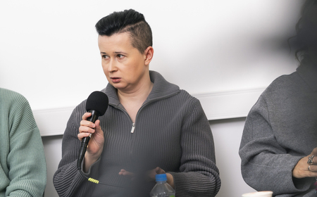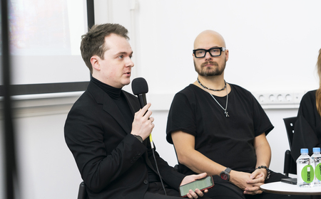 Модерировал дискуссию Вадим Булгаков — дизайнер, арт-директор, диджитал-продюсер, руководитель направления «Цифровой продукт и искусственный интеллект» в Школе дизайна НИУ ВШЭ, дизайнер в Лаборатории дизайна НИУ ВШЭ.