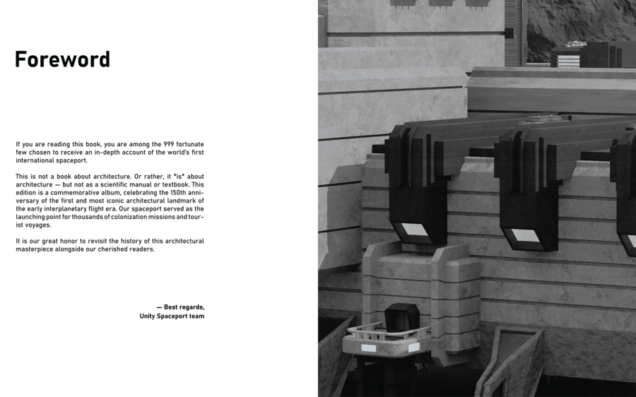 «UNITY» — Первый интернациональный межпланетный космопорт, в котором монументальный симбиоз технологий и архитектурных решений образуют строгий, но эстетически совершенный ансамбль.