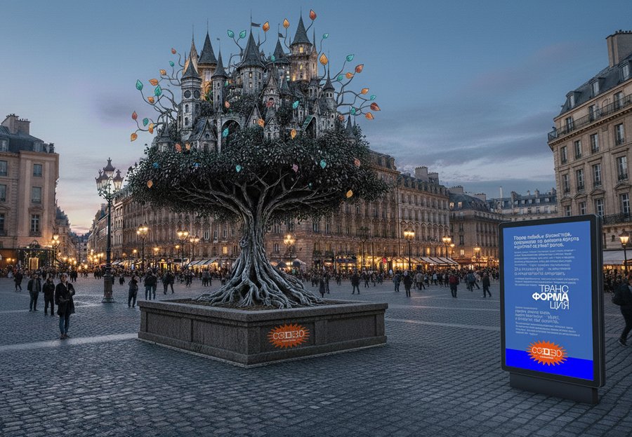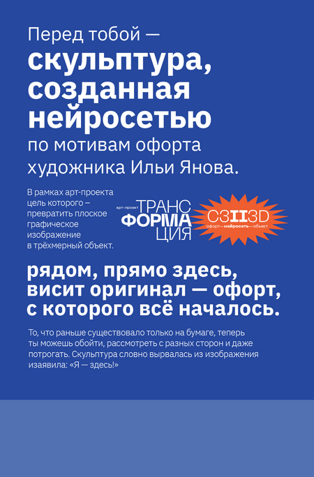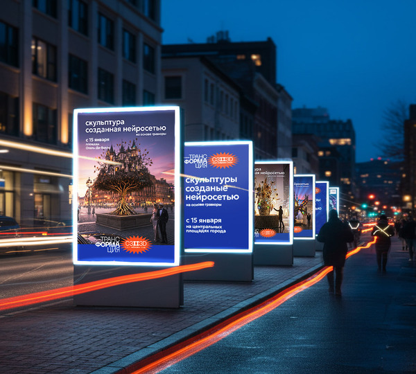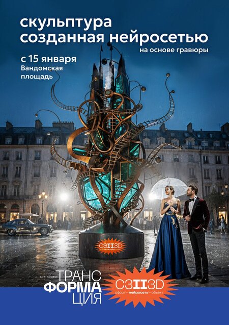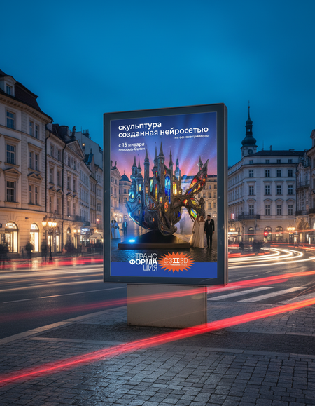 Арт-проект «трансФОРМАция» исследует использование нейросетей как креативный инструмент перехода от графического изображения к монументальным городским скульптурам. То, что существовало как графический образ на листе бумаги, через цифровое воображение ИИ обретает объём и масштаб.