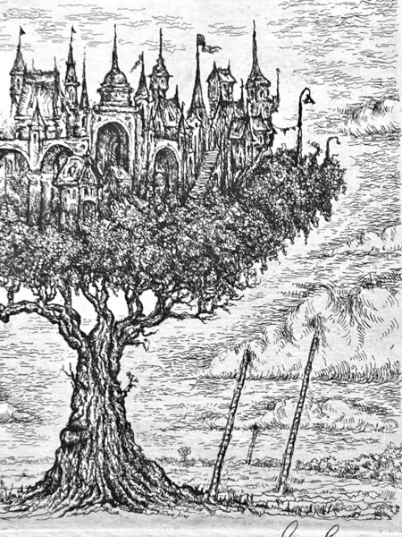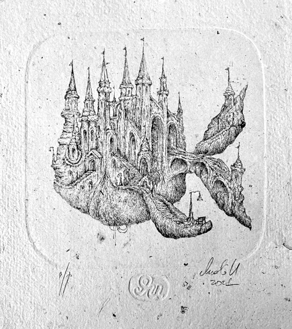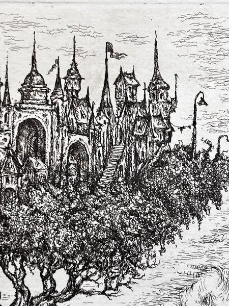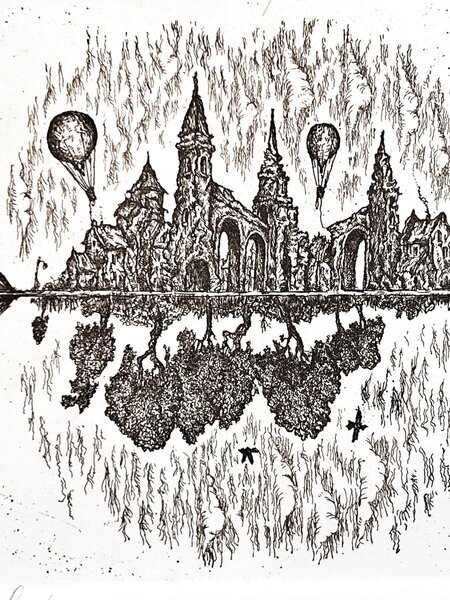 «Город-мечта» Офорт, травленый штрих. 2019 14×14 см