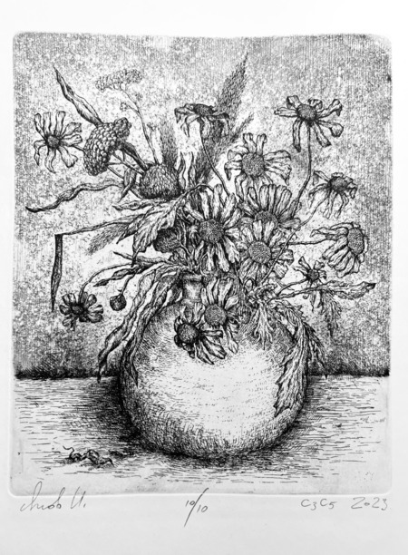 «Сухой букет» Офорт, травленый штрих, многократное травление, акватинта 2021 14,5×17 см