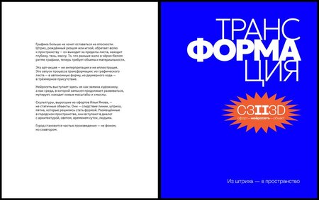 лого: Слово ТРАНСФОРМАЦИЯ с типографическим акцентом на ФОРМА. Звезда с аббревиатурой состоящей из кодового обозначения офорта в международной системе печатных техник С3, искусственного интеллекта II и объемного объекта 3D.