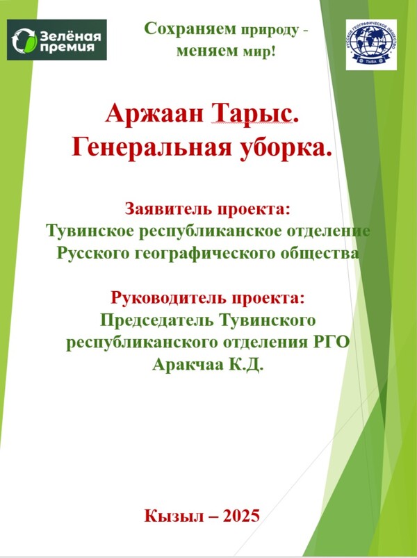 Планы проекта: В проект приглашаются члены Студенческого экологического отряда «Капелька» ЕГФ ТувГУ (18 волонтеров). Сроки работы: (16.06. — 30.06).2026 г. Место работы — территория недалеко от аржаана Тарыс, находящегося в 700 км от г. Кызыла в горно-таежной местности, куда можно доехать только на УРАЛах. Бюджет: 1239470,00 руб. (расшифровка в презентации).