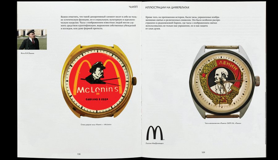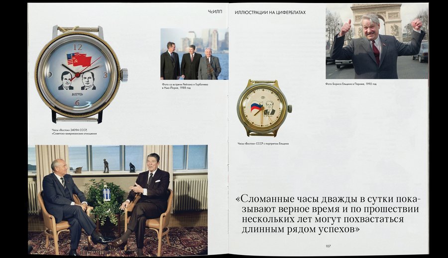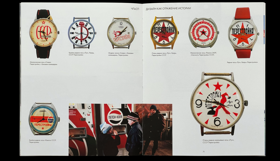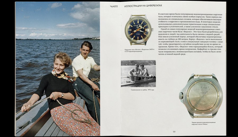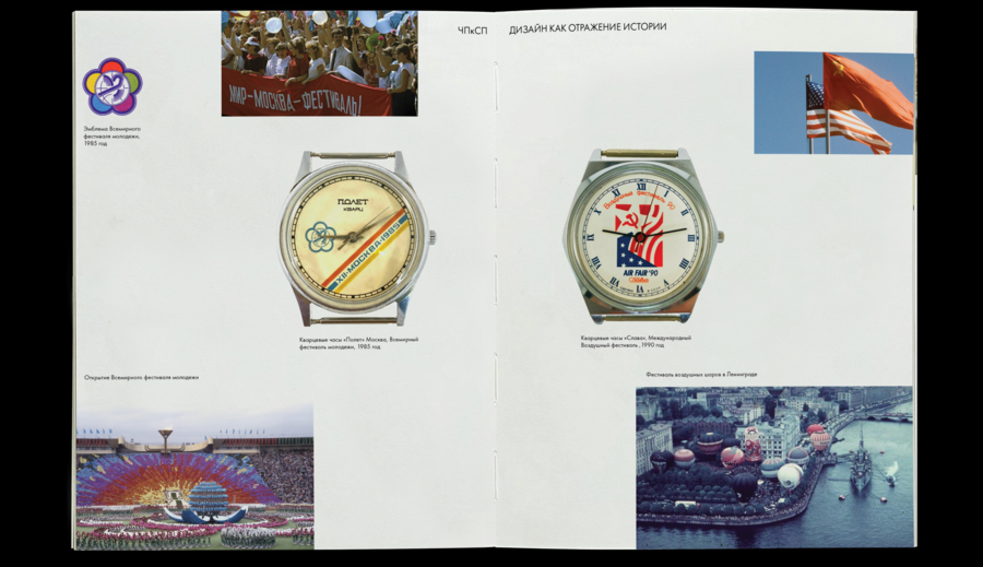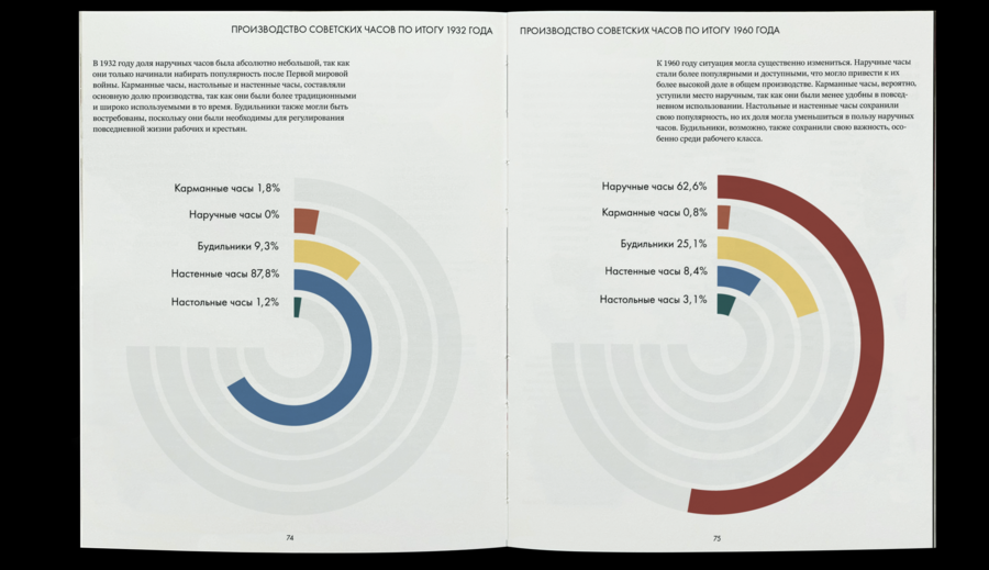 In a visual study, I’m looking at the features of the design of Soviet hand-held clocks in the context of the time in which they were created. The book model repeats some elements of the typical visual aspects of the clock, such as the location of the indices on the dial around its perimeter and the axial vertical of the hand-held clock strap.