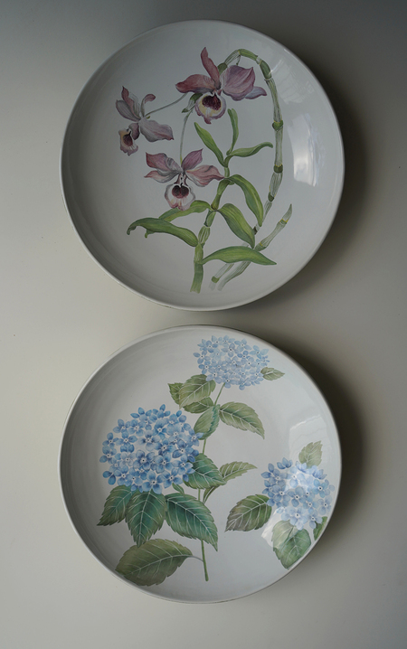 Гончарные тарелки с ручной росписью в технике «майолика». Июль в Москве.