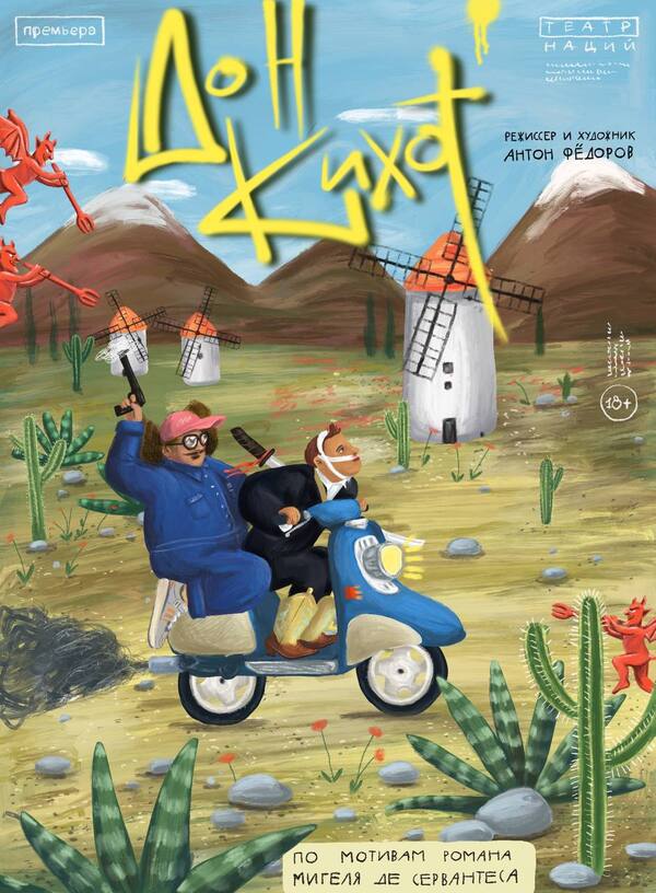 Дон Кихот режиссера Антона Фёдорова — не только отчаянный романтик, но и тиран — он стремится попасть в выверенную реальность дешевого рыцарского романа, туда, где все очень ладно склеено, все понятно: победа заслужена, а проигрыш признан, туда, где есть настоящая любовь и честная борьба. Дон Кихот старается вписать в эти рамки не только собственную жизнь, но и всю окружающую его реальность, а реальность, в свою очередь, оказывает жесткое сопротивление.
