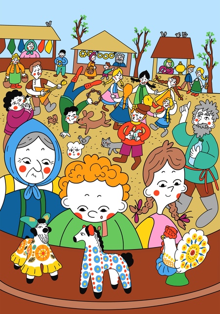 Колобок увидит, как мастерицы собираются вместе и создают яркие фигурки животных и людей.