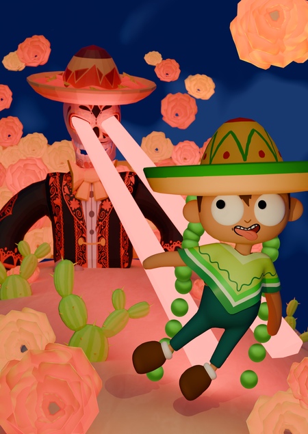 3D shoot ’em up компьютерная игра от третьего лица, где вы играете за пончо-бойчика, который летит с помощью начос-шляпы.