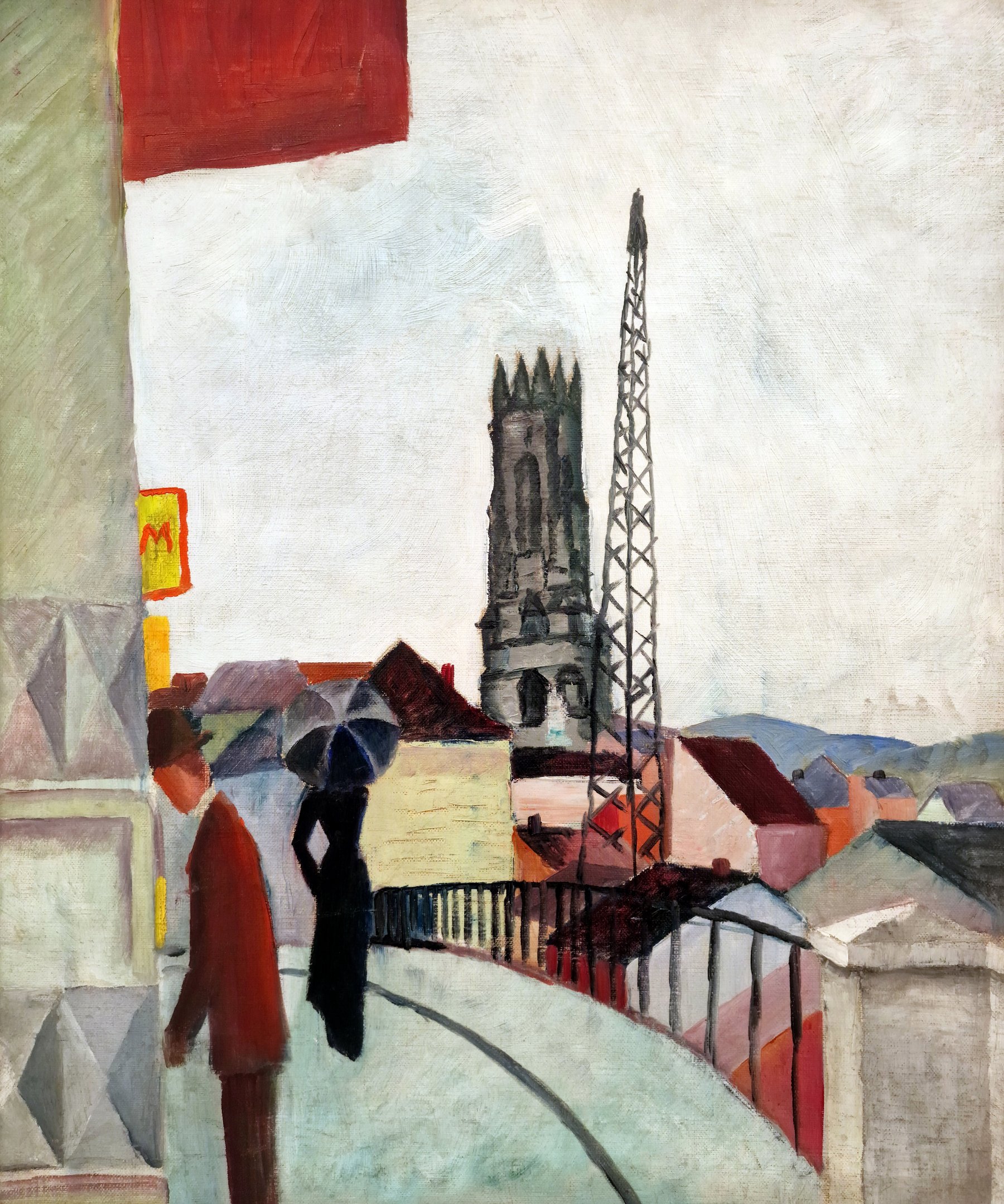 «Кафедральный собор во Фрайбурге в Швейцарии» (1914) — произведение немецкого художника-экспрессиониста Августа Макке, участника объединения «Синий всадник». На картине представлен завораживающий городской пейзаж, отражающий впечатления автора от города Фрайсбург. Мы видим прохожих на мосту, здания на фоне бесцветного неба. Работа пронизана белым светом и спокойствием, нежностью, но в то же время в ней ощущается меланхоличная пустотность и одиночество.