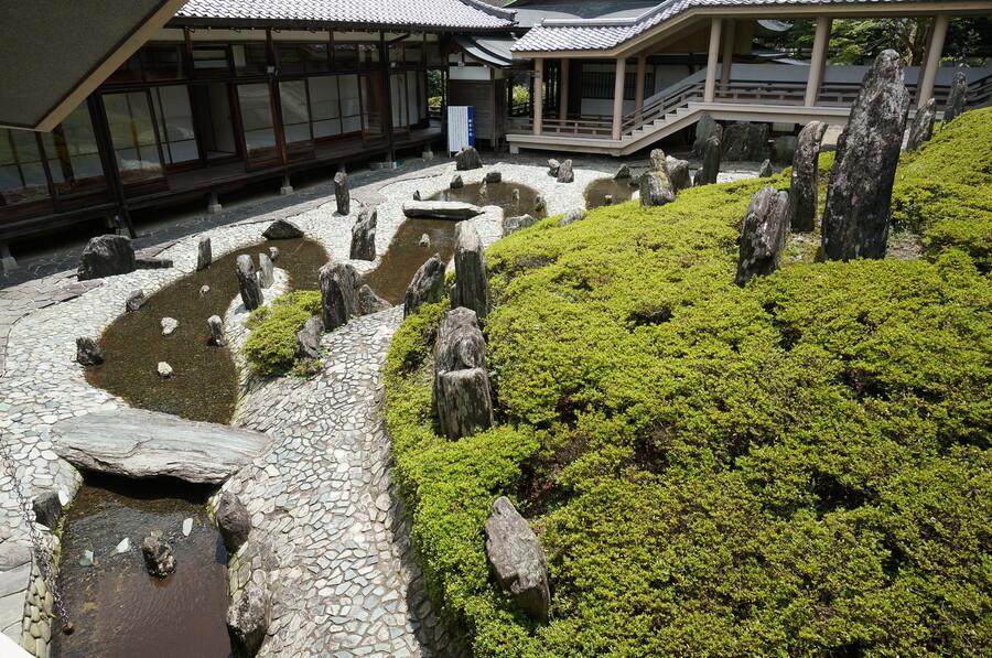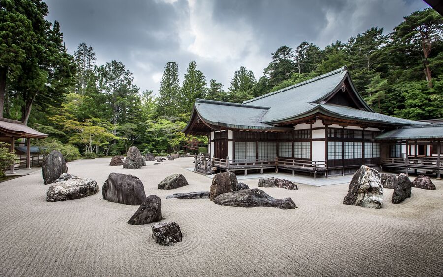 Сад камней храма Рёан-дзи — один из важнейших примеров дзэн-буддийского минимализма. Композиция сада состоит из 15 камней, расположенных в островки на выровненной гравийной площадке. Пустота между элементами имеет не меньшее значение, чем сами объекты. Интерьер самого храма также крайне сдержан: татами, белые стены, открытые пространства, отсутствие украшений. Пространство не отвлекает, оно медитативно. Это не утилитарный минимализм, а философский — направленный внутрь, а не наружу.