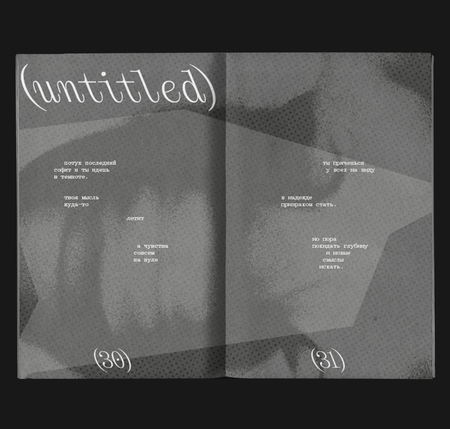Елисей — это студент магистратуры Школы Дизайна, мой знакомый. Он часто пишет стихотворения — это его хобби — и публикует их у себя в соц.сетях. Он мечтает о собственном сборнике его творчества. Елисей через свои стихотворения передает эмоции и чувства, которые ощущает за день, пишет стихотворения как личный дневник. Именно концепция его стихотворений легла в основу стиля сборника.