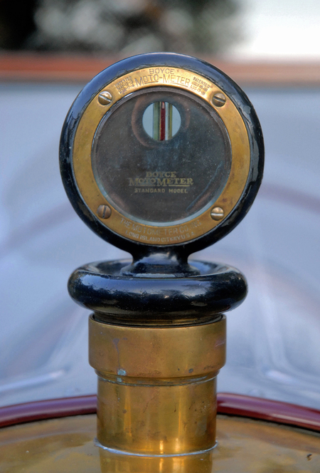Мотометр измерял температуру пара, скапливающегося над поверхностью воды в радиаторе, и сообщал об этом водителю с помощью хорошо видной из кабины градуированной шкалы. Одновременно прибор являлся пробкой для радиатора, в который периодически требовалось доливать воду.