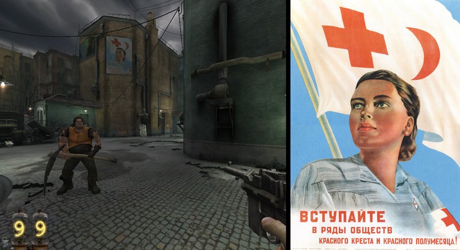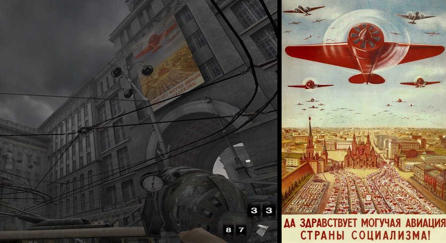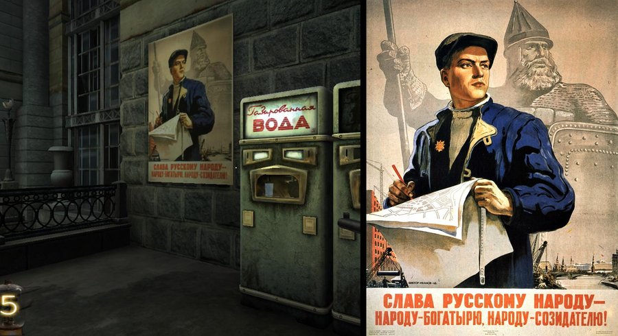 В игре «…присутствуют преимущественно реально существующие плакаты сталинской эпохи, что объясняется тем, что события игры разворачиваются в начале альтернативных 50-х гг. XX в., в которых Советский Союз стал доминирующей державой в мире и вплотную подошел к построению идеального коммунистического общества.» — [1]