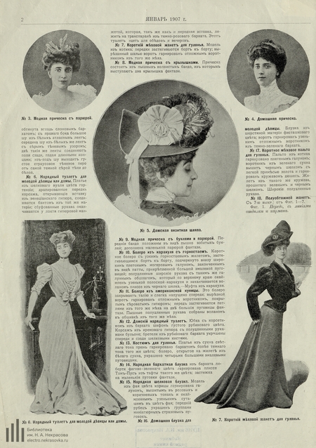 Слева: Нива (№ 1). Парижские моды (01.01.1907). Справа: Jupes Nouvelles, [журнал мод], № 34 (01.01.1909) / Оцифрованные фонды Библиотеки им. Н. А. Некрасова