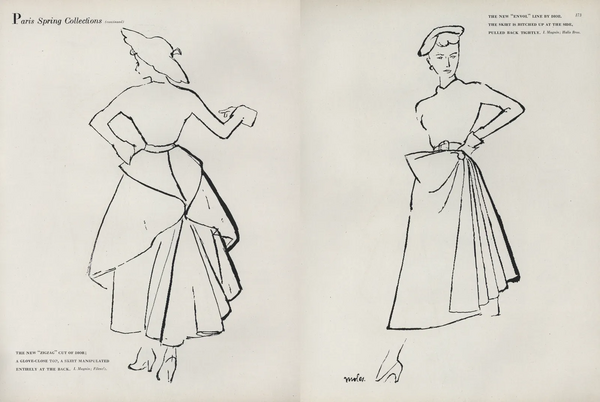Слева: Moles, Vogue (Март 1948). Справа: Мультипликационный фильм «Золушка» производства студии Walt Disney Productions (1950)