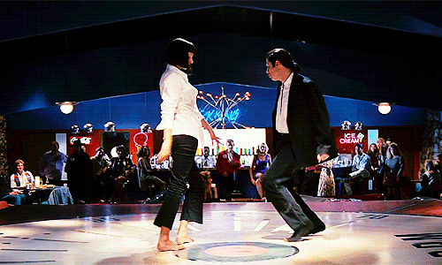 Слева: фрагмент из к/ф «Криминальное чтиво». Справа: обложка к/ф «Криминальное чтиво»