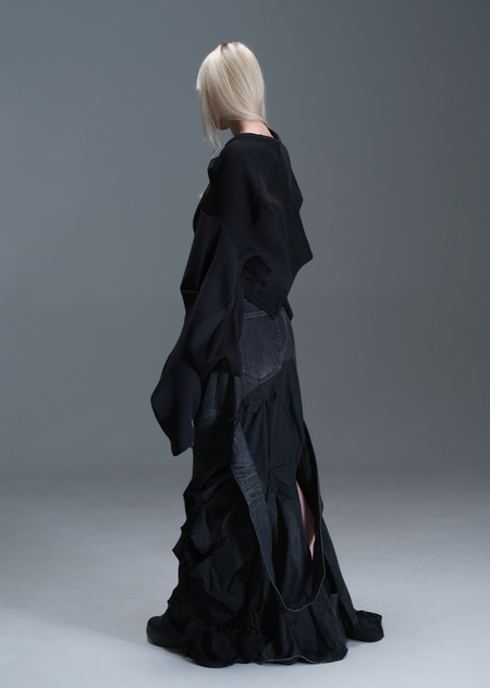 На данный момент главной областью разработки является апсайклинг из лоскутов ткани, которые остаются после работы швейного производства. Такой подход позволяет получать уникальные изделия, исключает полное копирование, имеет минимальные издержки, вещи при этом могут быть из 100% нового фабричного сырья. Объемные и многосоставные формы укрывают в себе, достраивают силуэт подобно экзоскелету и калибруются тонкими дробными нюансами, которые как бы оплетают фигуру.