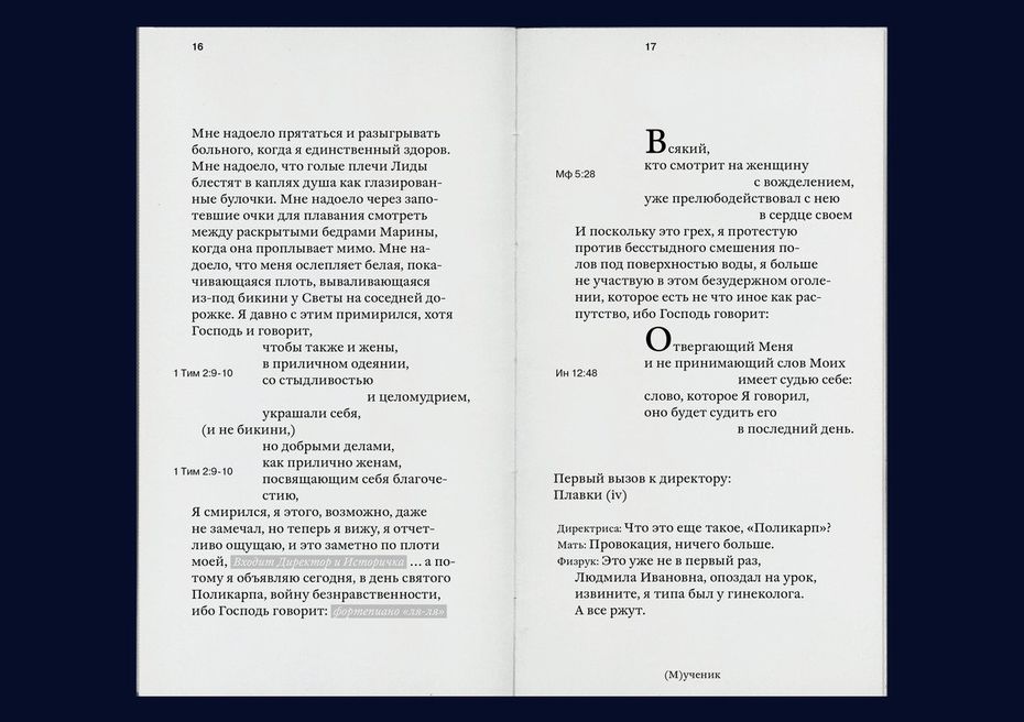 Я часто говорю своим студентам, что иногда неплохо вторгаться даже в издательский процесс, если они видят явные нестыковки в рукописи. Если можно договориться на уровне формирования книги, то это хорошо. Но если мы сталкиваемся с ситуацией, когда ничего исправить уже нельзя, то, анализируя материал, можно принять решения по макетированию, которые нивелируют недостатки рукописи. Если она уже подписана в печать, это отличный вызов для дизайнера, которому теперь необходимо решить все проблемы в макете.