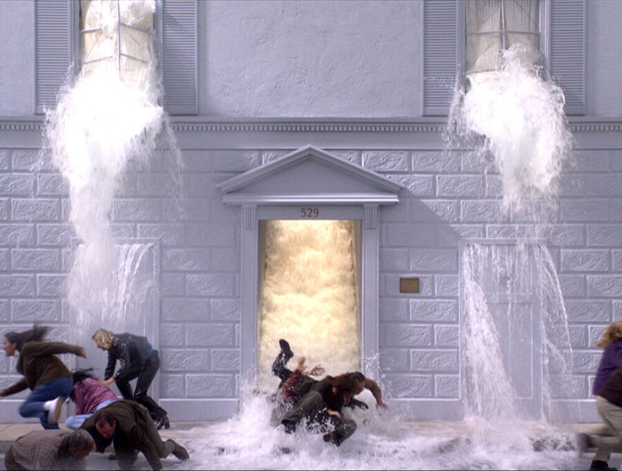 Благодаря обратной съемке и огромной площади экрана, Билл Виола создает по-настоящему эффектное вознесение. Вода, нарушая законы физики, забирает героя в вечный мир, где время живет по другим законам.