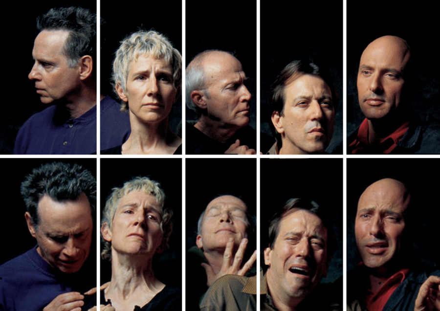 Иерониму Босху также необходимо было как можно детальнее передать выражение лица героев, которые точно бы передавали их внутренний мир. Однако в работе Билла Виолы больше заметна связь со зрителем, который активно принимает участие в происходящем, что заметно в том, как повернуты тела актеров к нам.