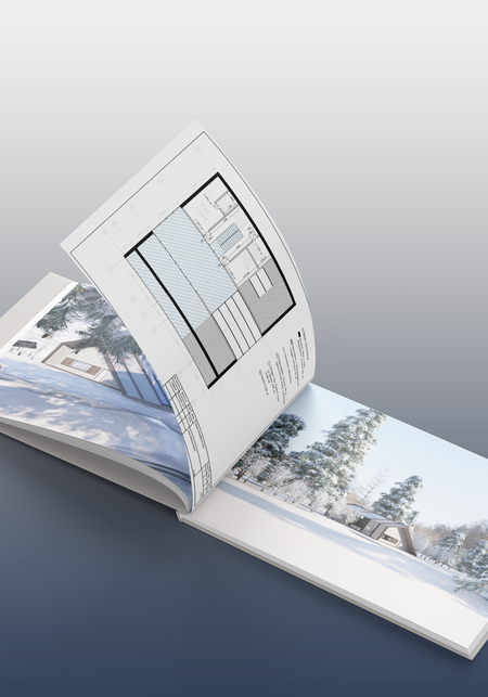 Проект дома для шеф-повара, расположен на Севере России в регионе Карелия. Регион славится мраморными каньонами, а его деревом-символом является карельская береза. Поэтому в оформлении фасадов используется черно-белая гамма, а также вдоль остекленной части фасада появилась березовая роща.