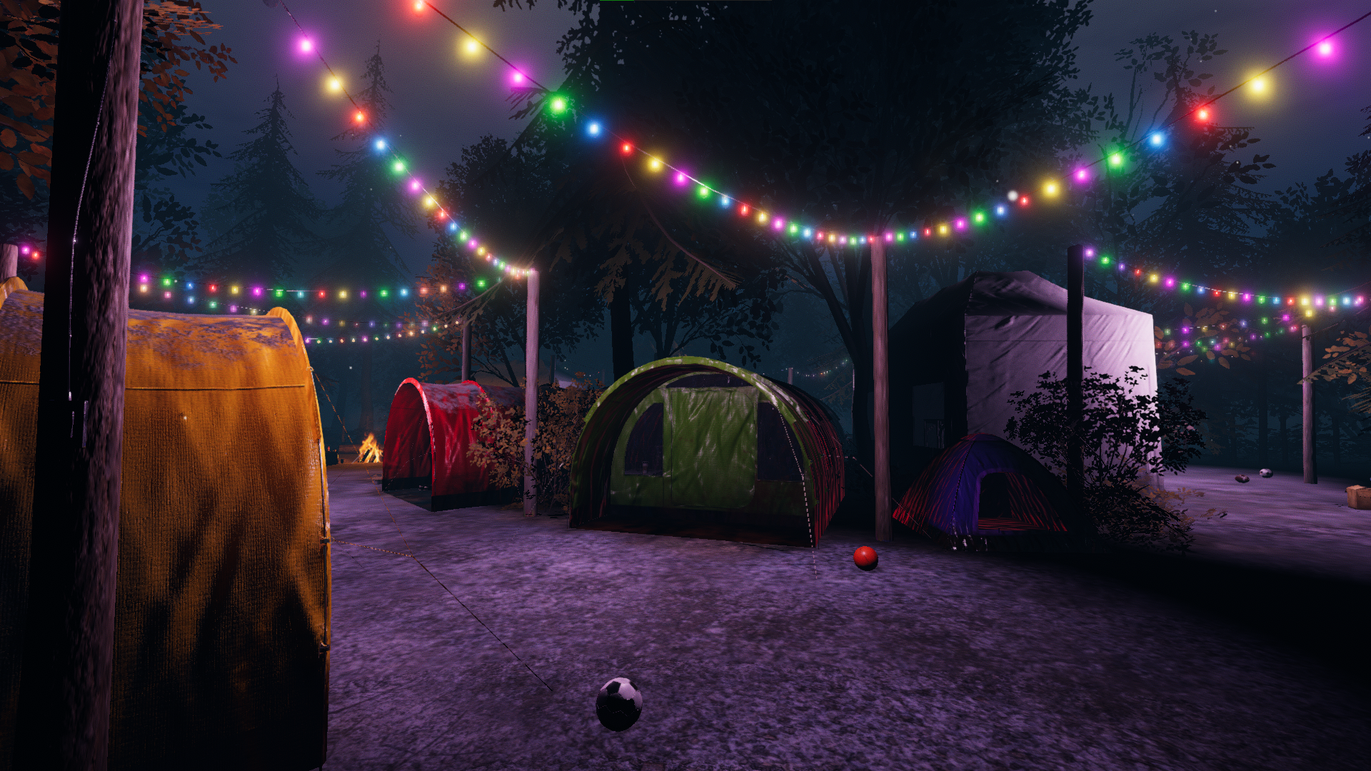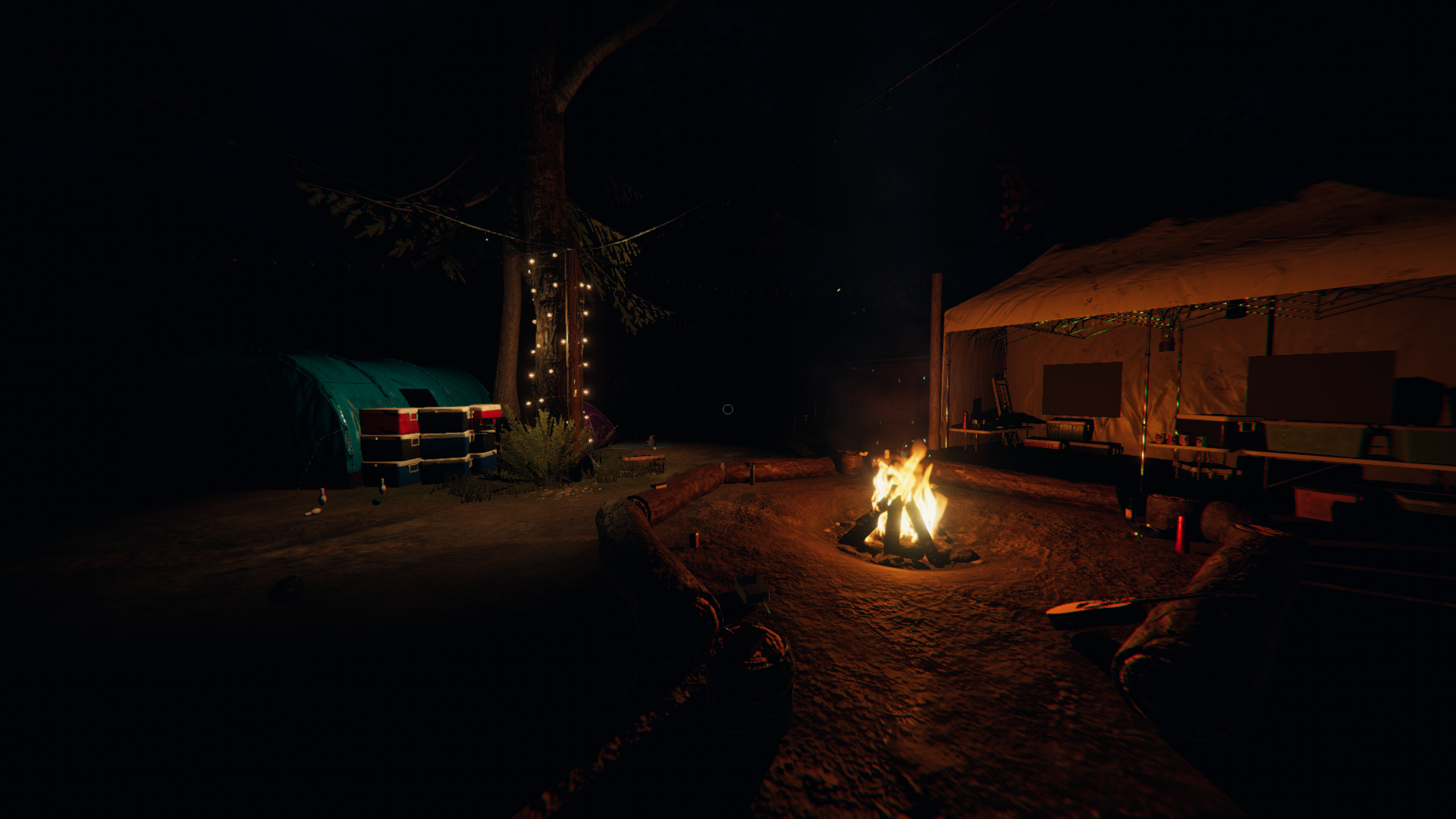 В лагере представлено несколько палаток и ванных комнат, а также, соответственно, костер, вокруг которого можно даже собраться со своей командой игроков и попросить одного из них сфотографироваться с ним «на память». Главное — не уйти в долгую тему дружеских каламбуров, иначе призрак не заставит себя ждать.